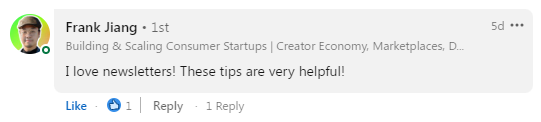 That’s when a comment caught my eye. It made me realize that people really look forward to good newsletters.